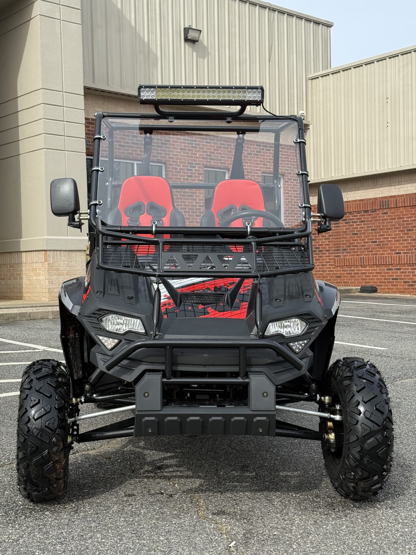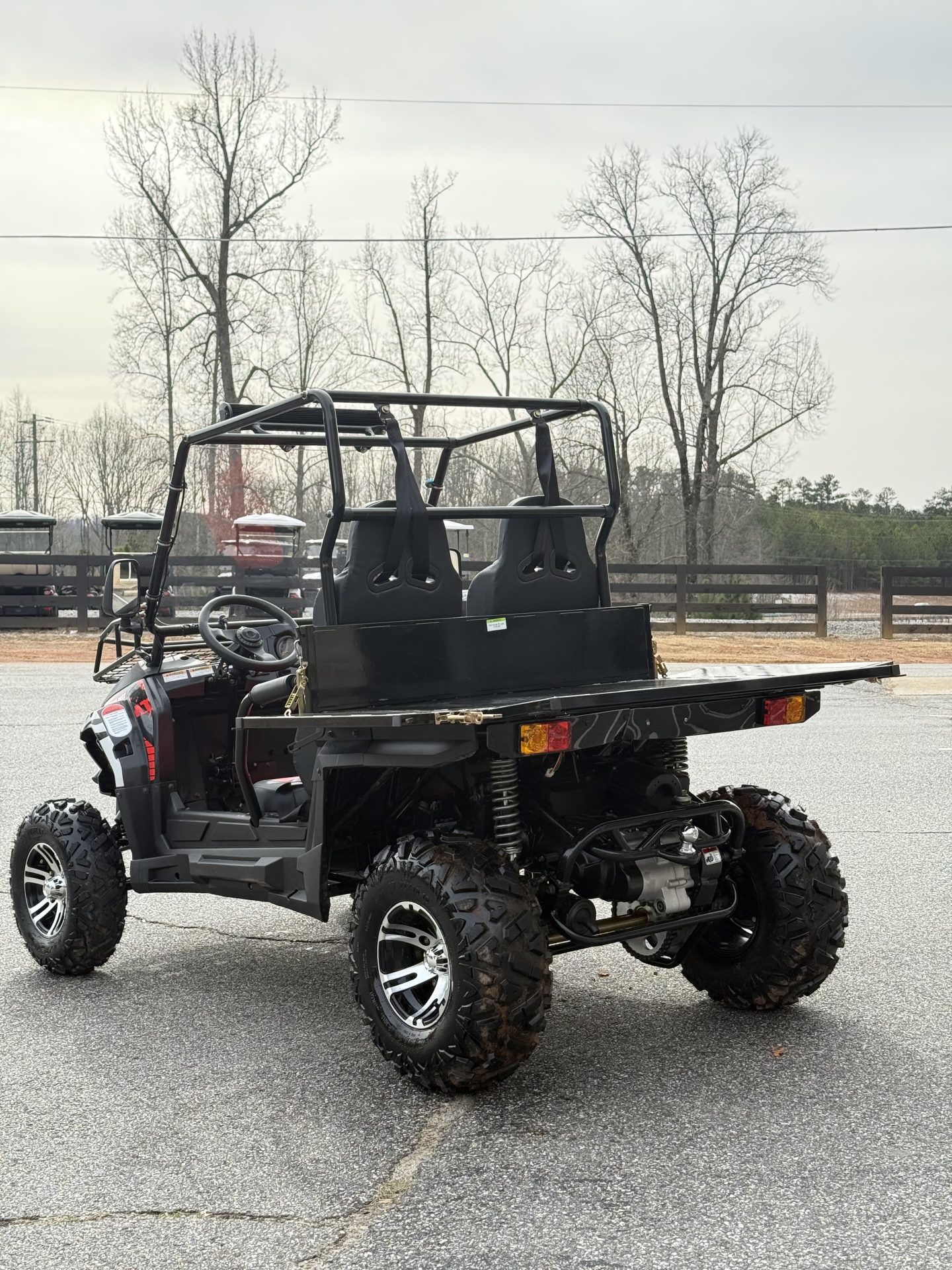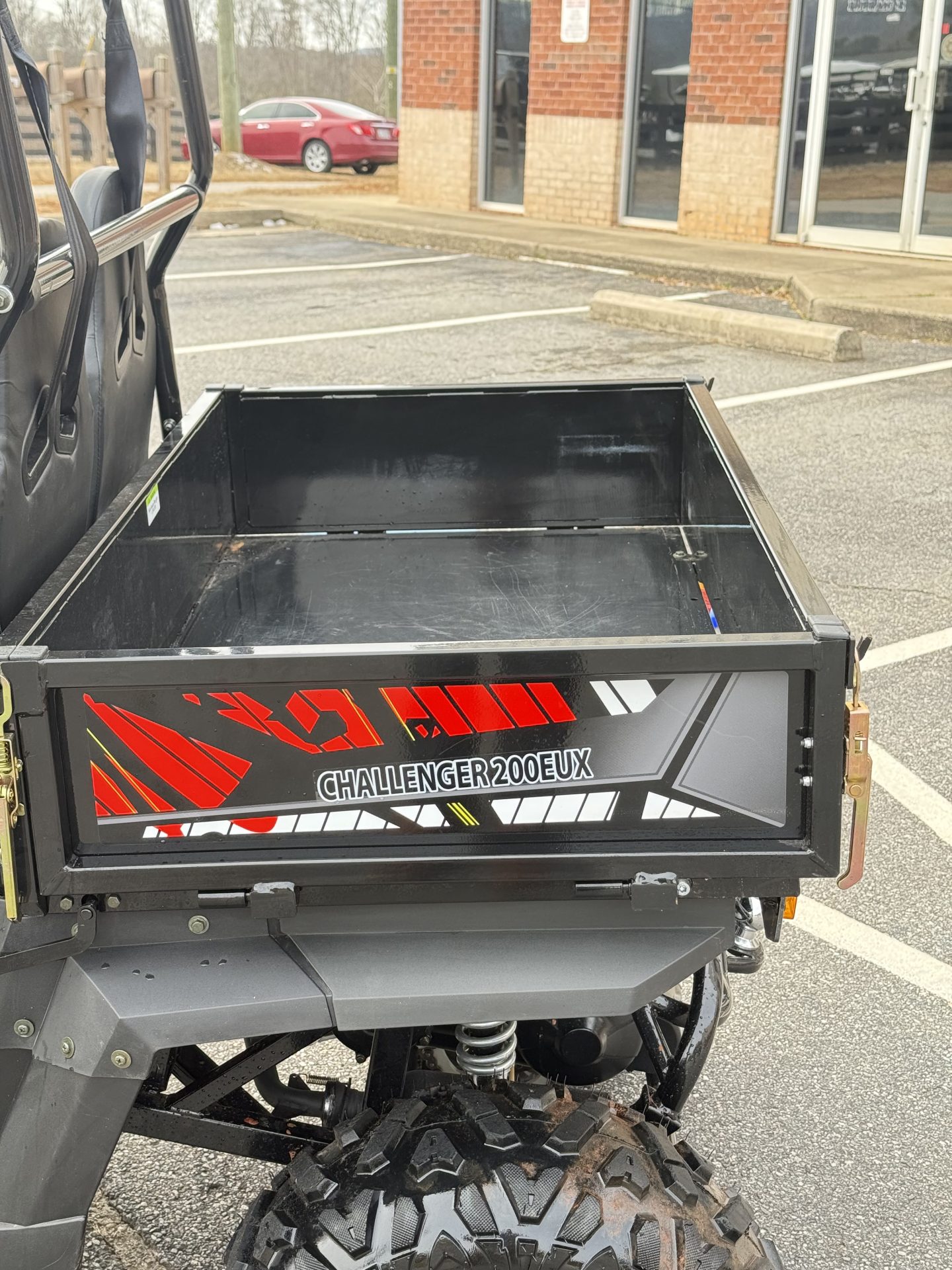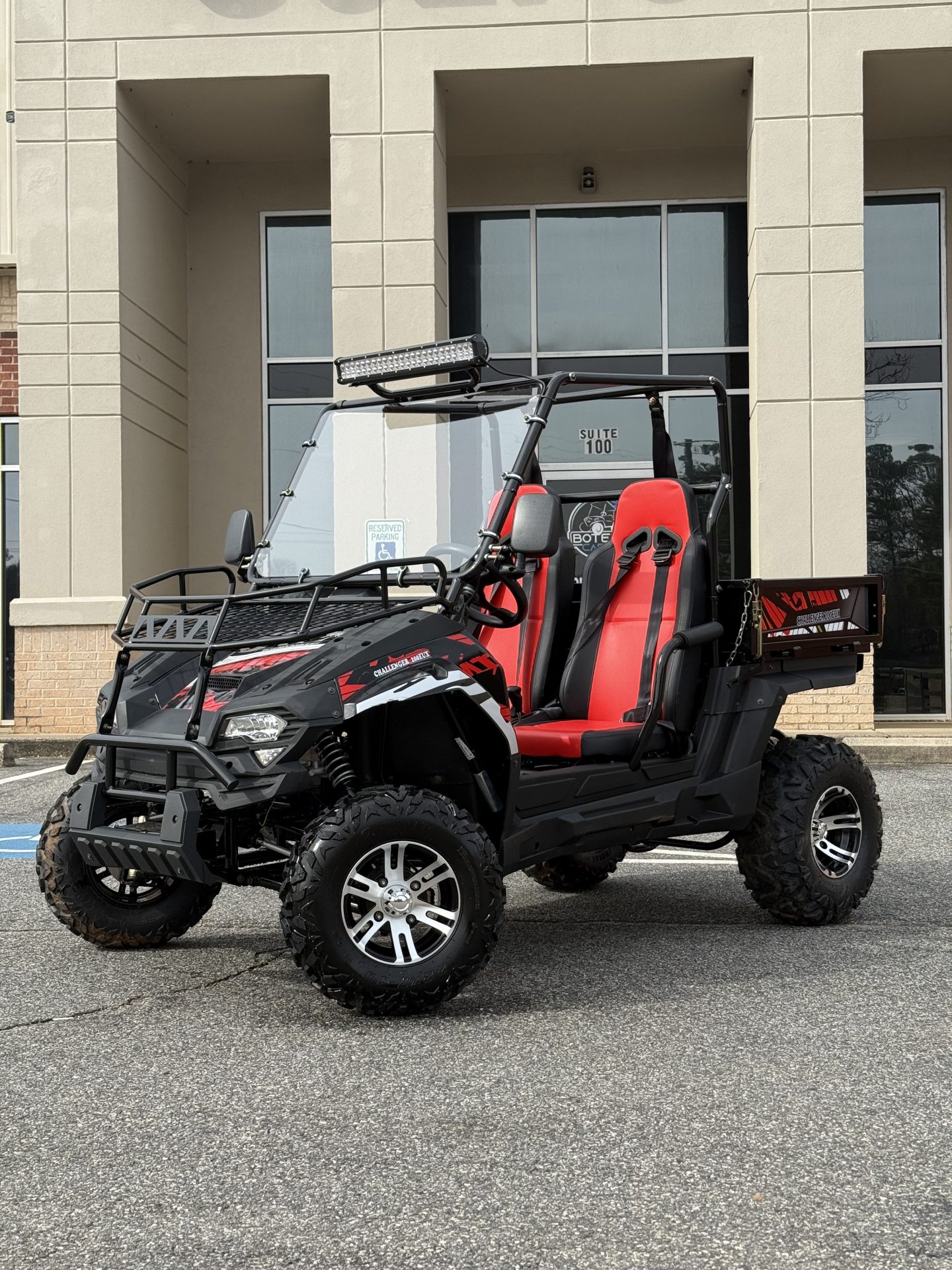 The front independent a-arm with shock absorber and rear swing arm goes over any tough terrain with ease. Standard features on our Challenger series includes but not limited to: digital speedometer/odometer, horn, adjustable steering wheel, 12v outlet, turn signals, bikini sunshade top, trailer hitch, front and rear disc brakes. Available Options are, winch, windshield, side rear view mirror, LED light bar and top cargo rack.