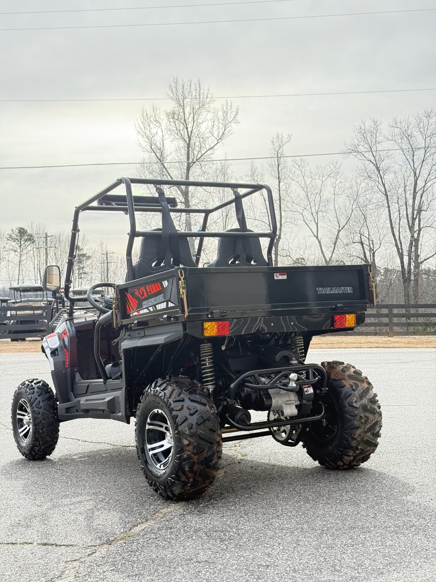 The TrailMaster Challenger 200U with a 169cc GY6 engine is a new model with a Large 27.5”X45.3”X93.5” dump bed with max load 165lbs, flips down 32 degrees. This aggressive Challenger has a new gear ratio set up which offers maximum low-end torque.