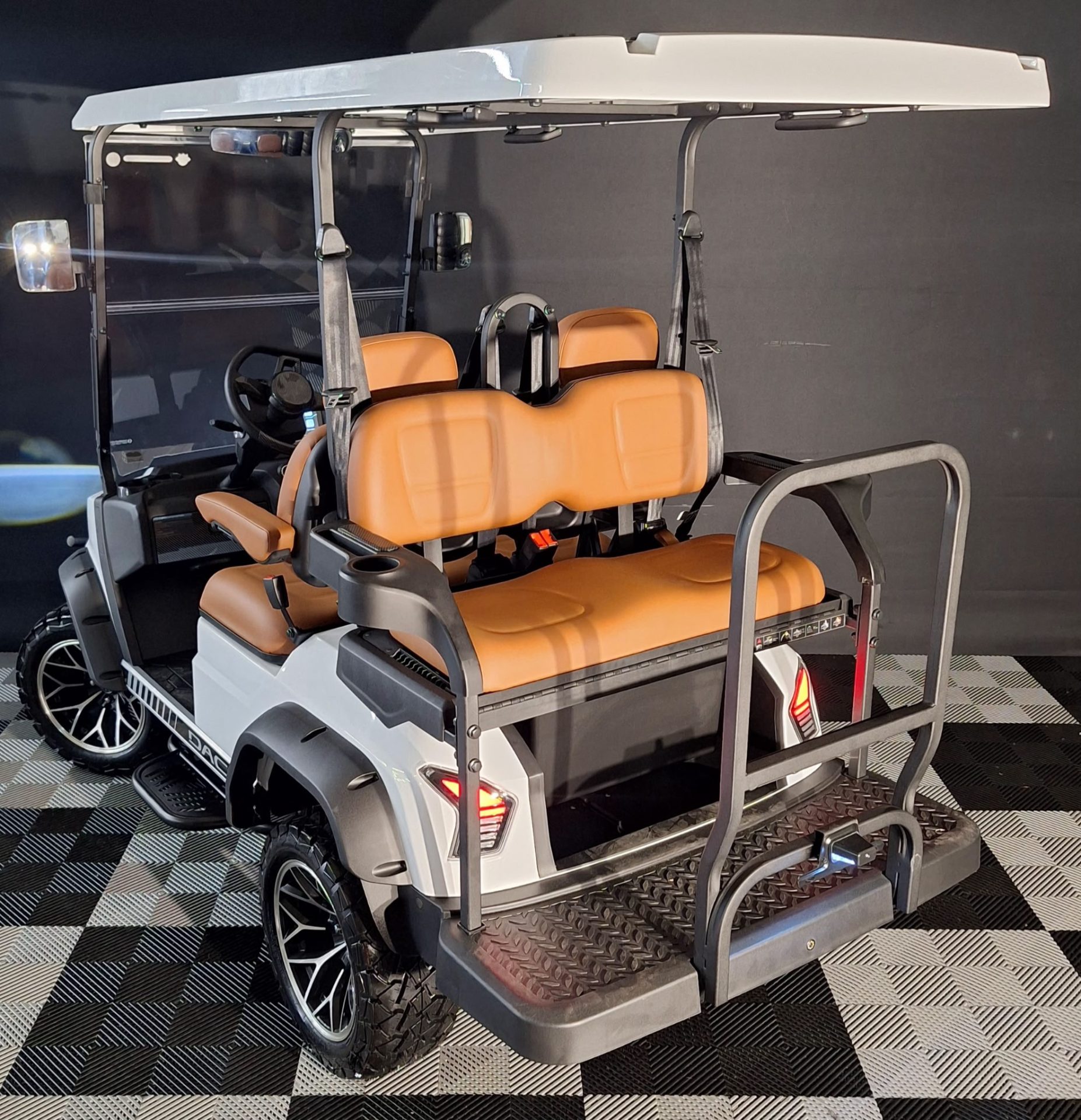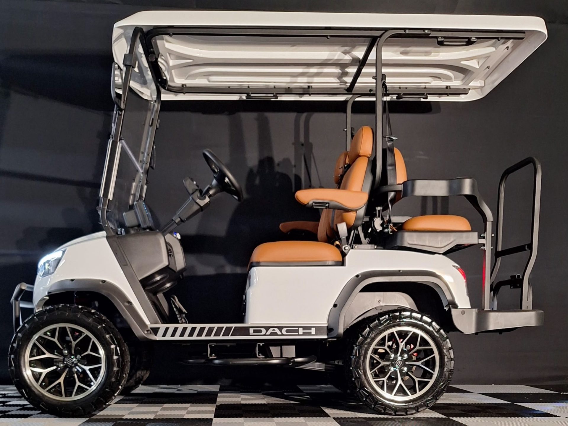 The Dach Falcon 2+2 is a robust, feature-rich 4-passenger electric golf cart offering luxury, safety, and utility. Solar assistance, premium tech, off-road readiness, and street-legal options make it ideal for family, community, and resort settings alike.