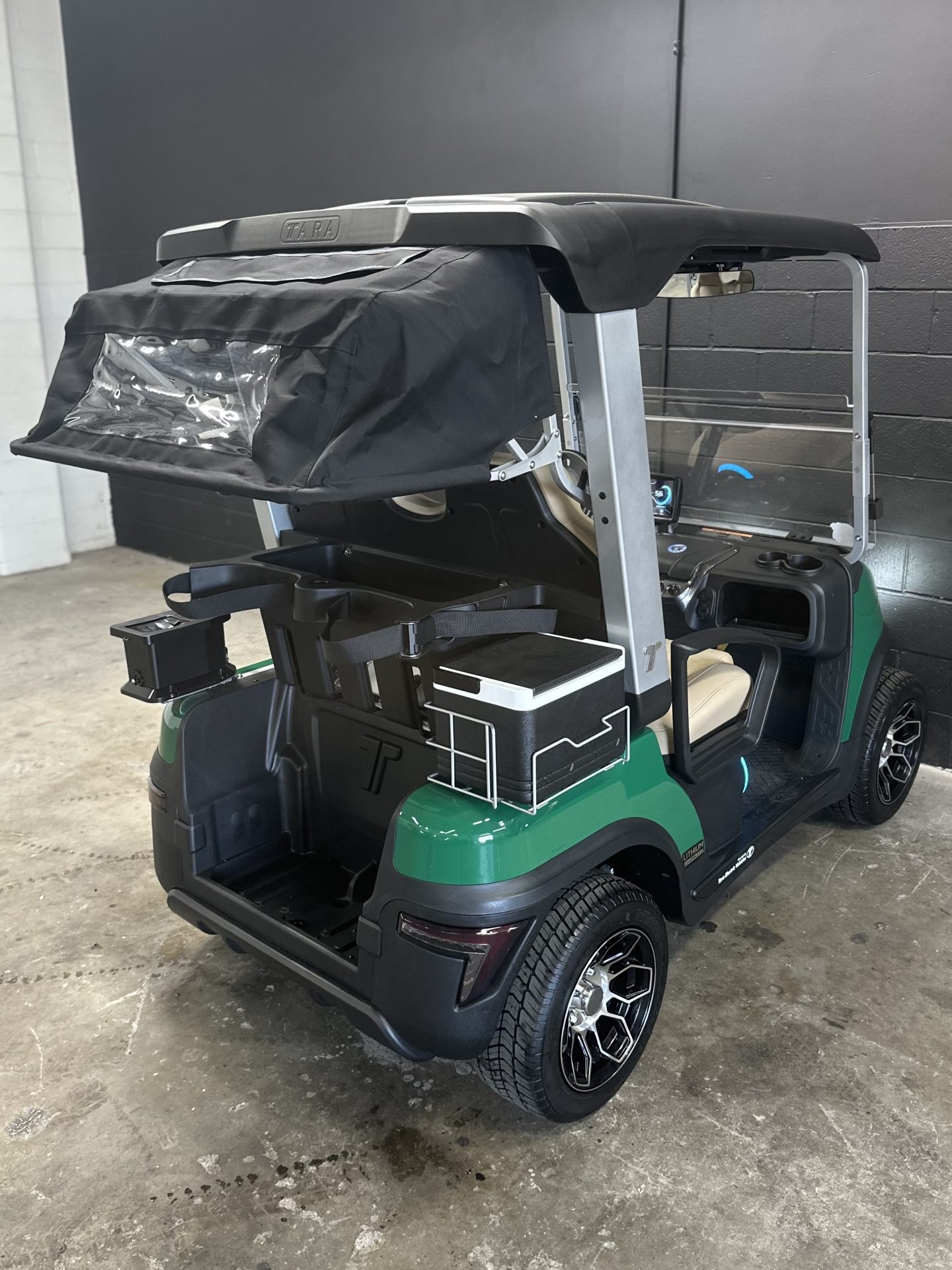 Tara has flowing contours that are crafted in your choice of premium materials, depending on how you wish to configure your golf cart or accentuate the interior. A wide array of add-on accessories available for both golfing and personal use.