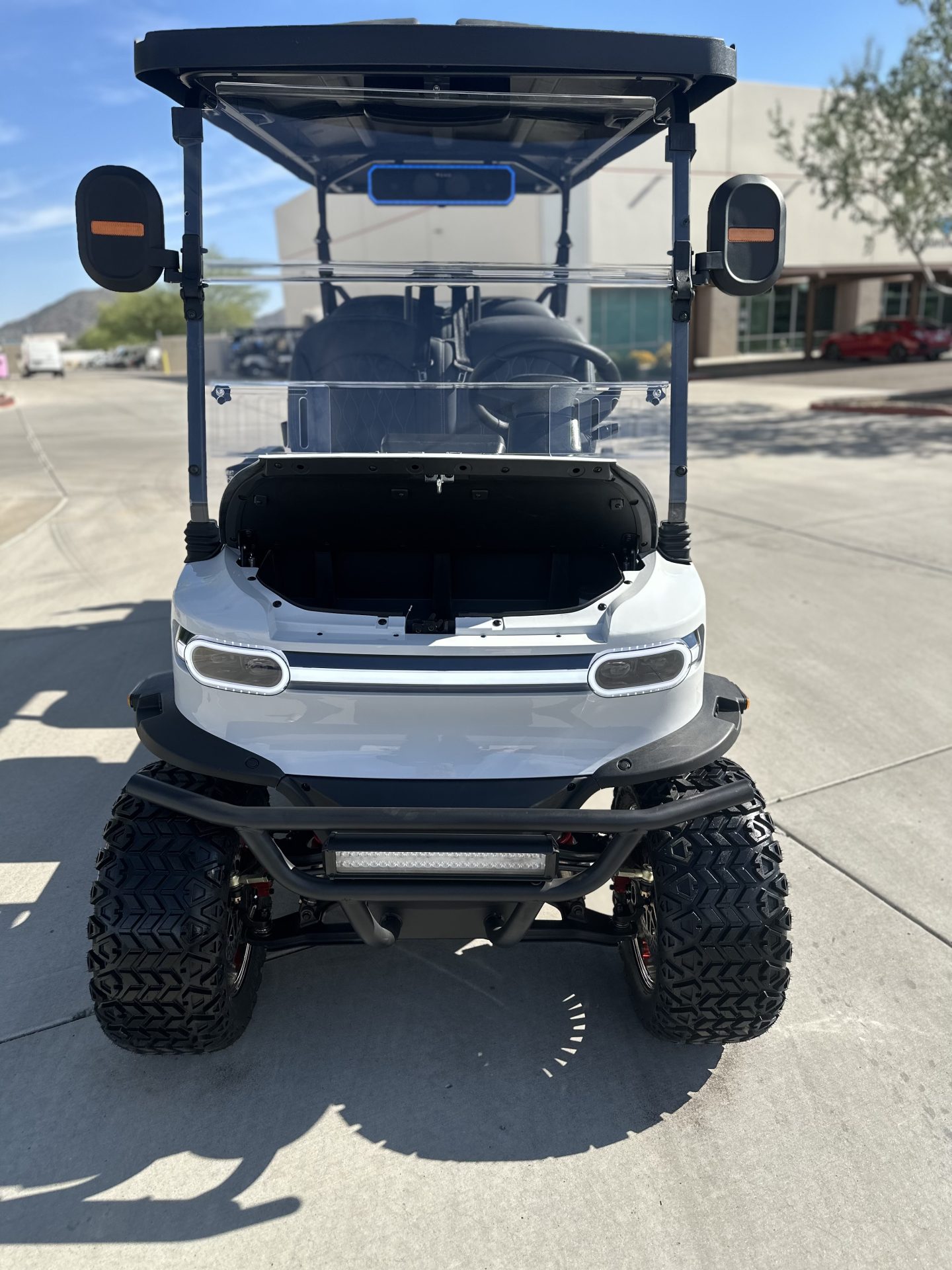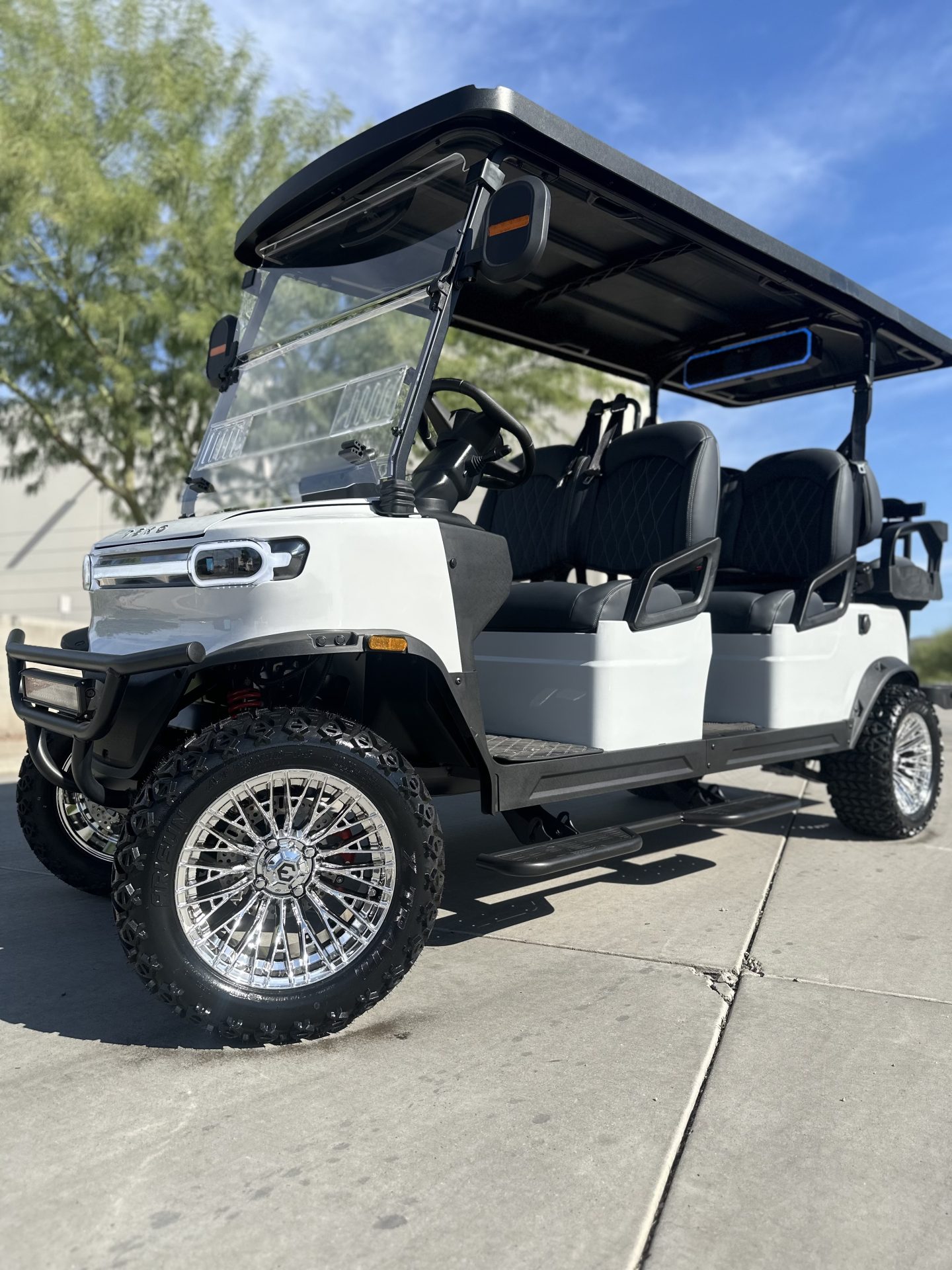 | Features / Accessories | • Backup camera • LED light bar, LED headlights / tail lights • Multimedia / Bluetooth / USB / audio options (e.g. sound bar, radio, Android Auto / CarPlay) • Windshield (foldable / acrylic • Custom wheels (14″) |