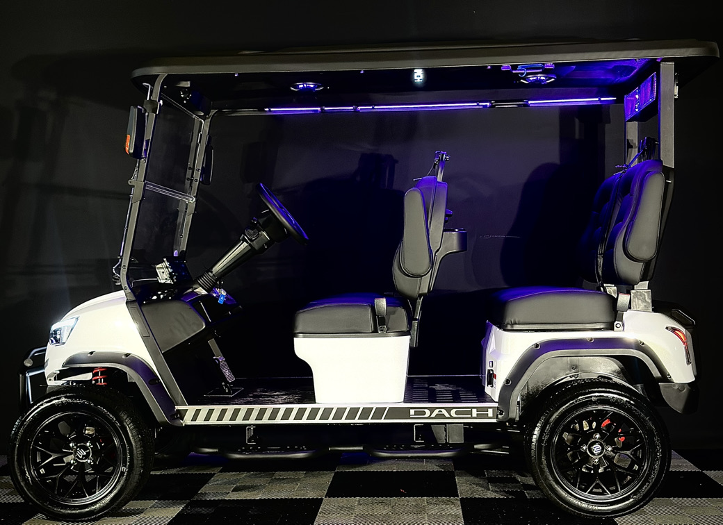 The Dach Apollo is a high-end, street-legal four-seater EV with premium build quality, advanced tech, and robust performance. From its cruise control and immersive infotainment to its durable unibody frame and all-around LED lighting, it delivers unmatched comfort and utility for both recreational and community use.
