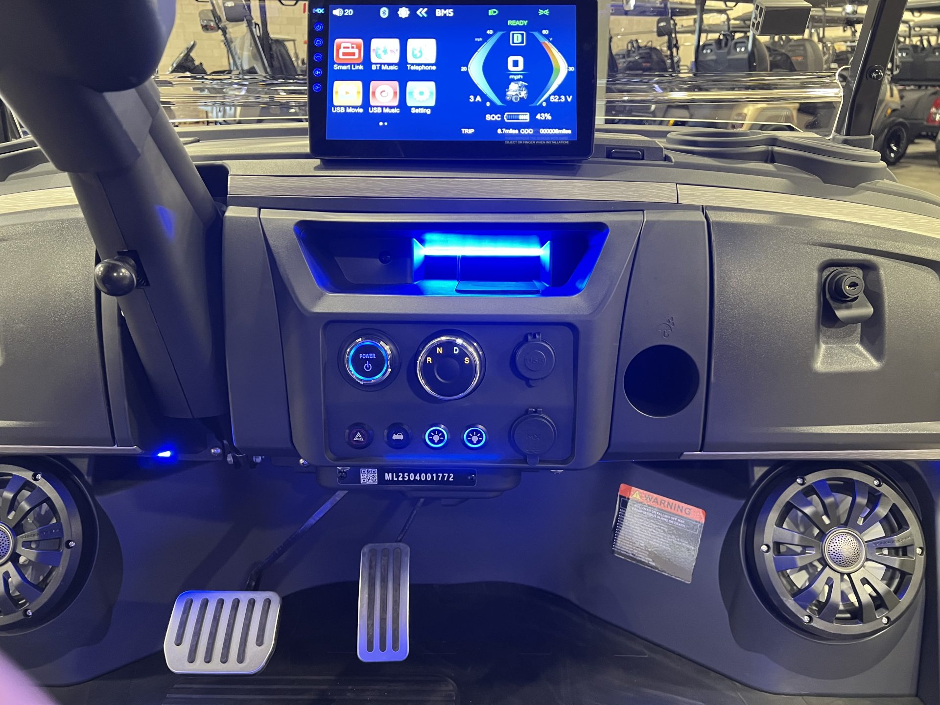 Locking Glove Compartments, 10.1” Digital Display Screen, Backup Camera, DOT Windshield, USB Ports & Pre-Wired 12v Switches, Horn, Digital Gauges, Lit License Plate Bracket, Built-in ECOXGear Marine Grade Sound System with 7.5A 360W Amp & Four 6.5” Speakers, Latched and Lit Frunk, Storage Beneath Rear Seats, Wireless Cell Phone Charging Pad, Tilt Steering, Horn in Steering Wheel, Umbrella Holder