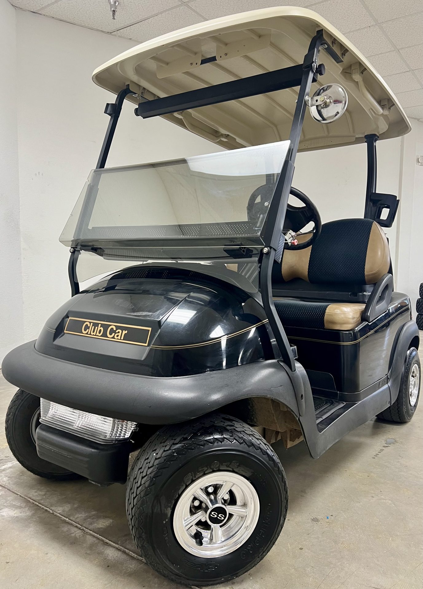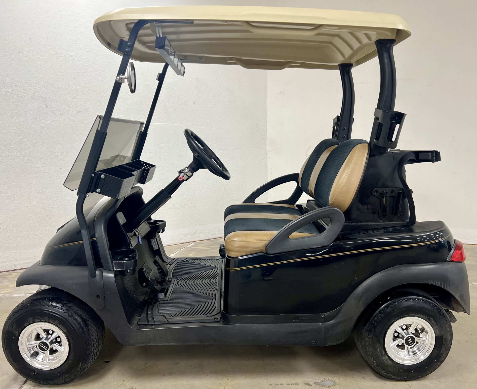 Great golf cart, 5 panel rear view mirror, tinted windshield, 2 tone vinyl cloth seats, 2 sand bottles with holders